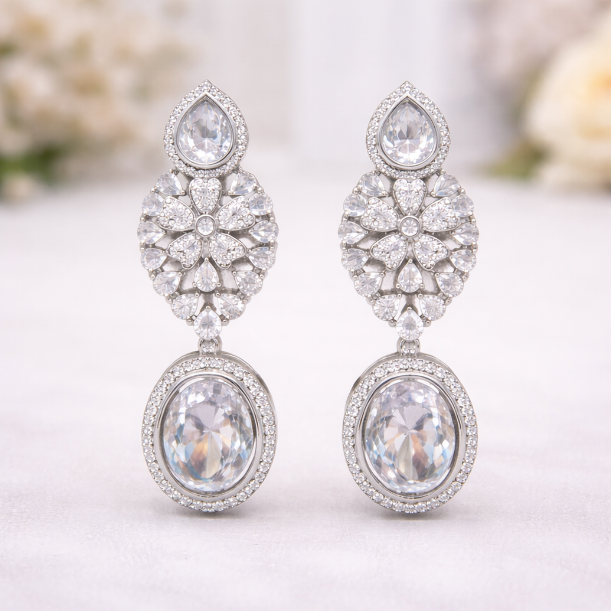 Floral Crystal Oval Drop Earrings